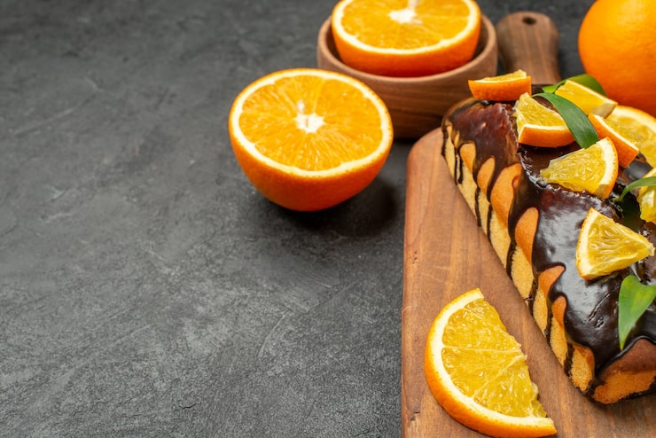 - Апельсин 2,5-3 штуки (2-2,5 шт. — для украшения пирога, 1/2 шт. — выжать сок для теста)