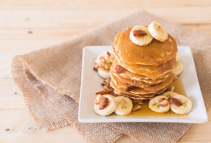 Для приготовления диетических банановых панкейков вам потребуется спелый и сладкий банан, хлопья овсяные быстрого приготовления (или смесь хлопьев из различных злаков), яйца и немного молока. Все компоненты поместите в чашу стационарного блендера или используйте погружной, чтобы добиться однородной консистенции теста для панкейков. Также можно предварительно измельчить хлопья овсяные в кофемолке и смешать их с остальными ингредиентами, что даст аналогичный результат. Подробности приготовления смотрите в моем пошаговом рецепте!