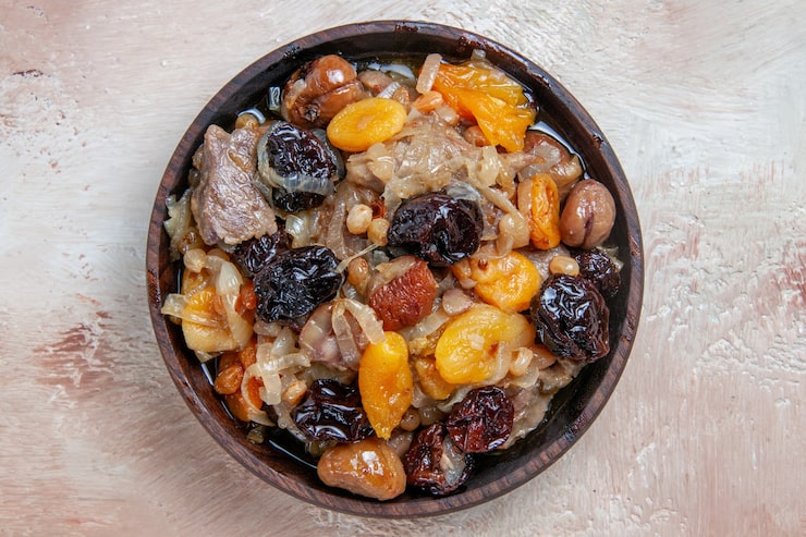 Подавайте готовый бигус с черносливом, разложив его по порционным тарелкам. Наслаждайтесь трапезой!