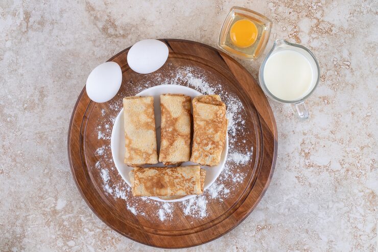 Прокисшее молоко – прекрасный ингредиент для приготовления нежных, ажурных блинчиков. В тесто следует добавить сухие дрожжи, а количество сахара определяйте на свой вкус – мои блинчики получились со сладким привкусом.