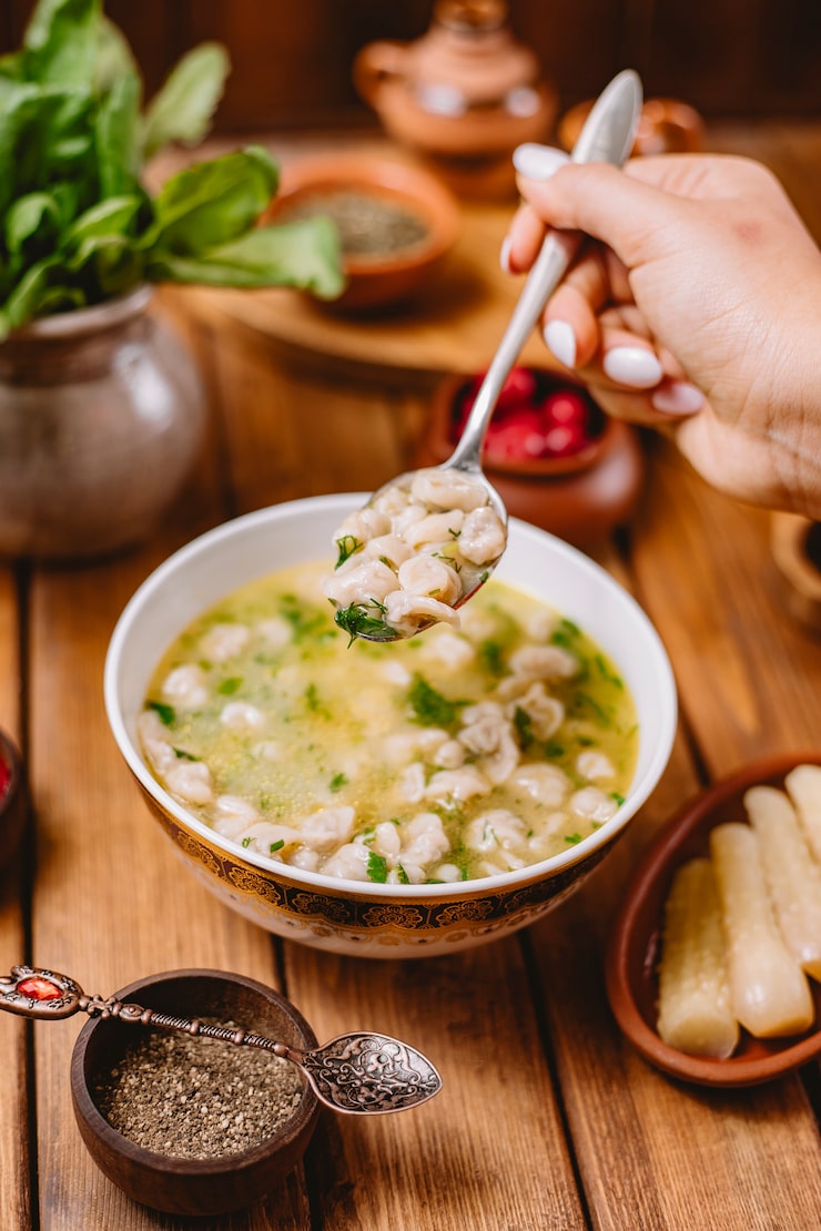 Как часто вы предлагаете гостям бульон или суп? А когда в последний раз вы доставали супницу из фамильного сервиза? Давно? Тогда не стоит откладывать – пора смахнуть с нее пыль и подать куриный бульон с праздничными клецками! Это безусловно, эффектное, красивое и запоминающееся блюдо. И при этом весьма экономичное!