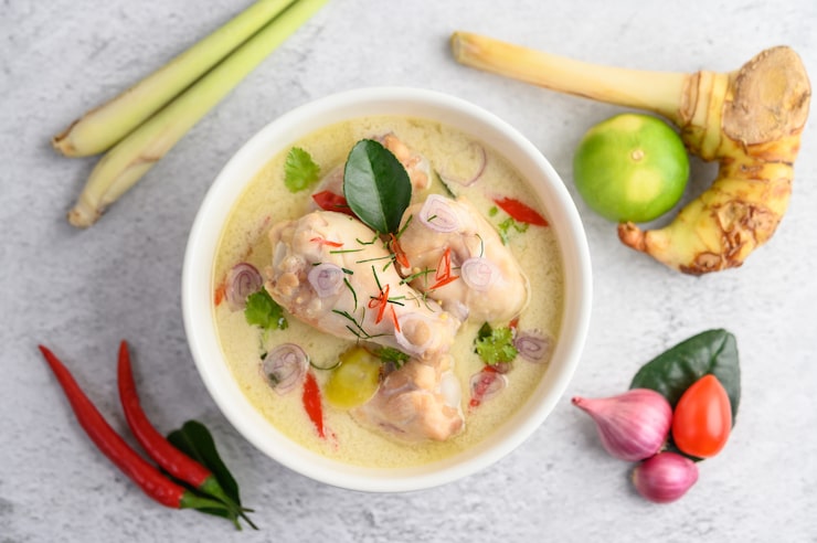 Кокосовый суп с креветками и курицей