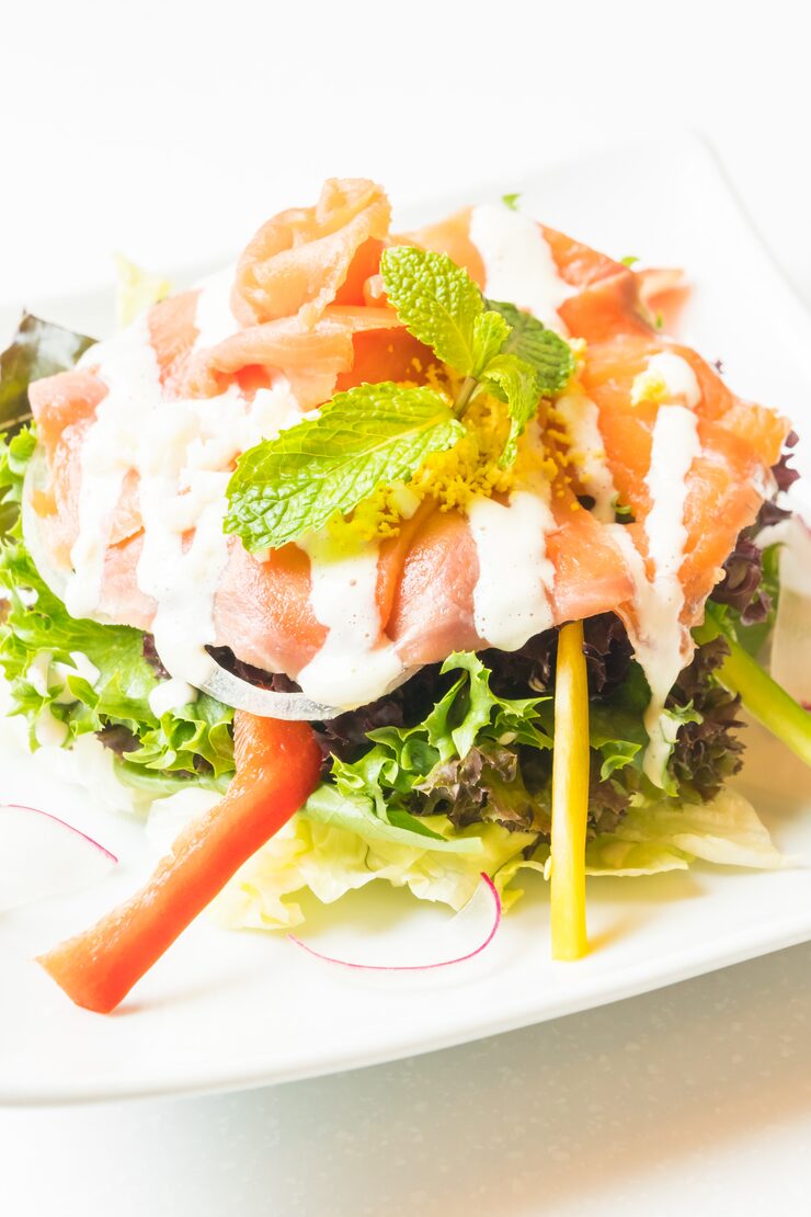 Свекла, семга и перепелиные яйца в оригинальном салате