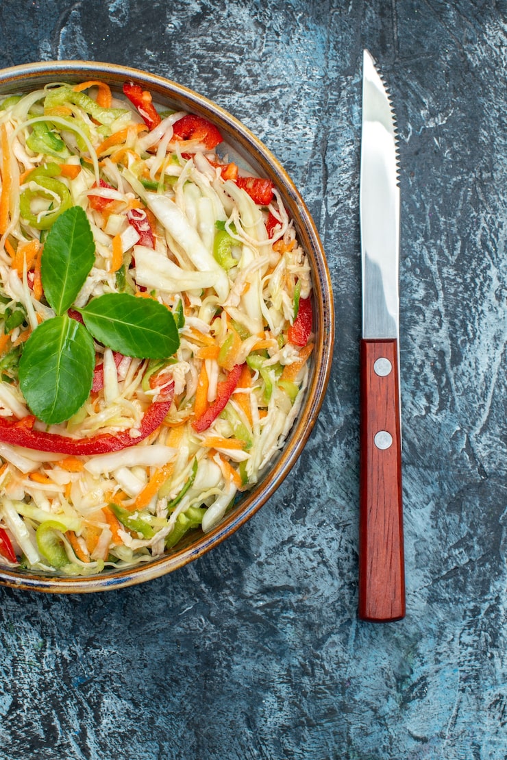 Освежающий салат с капустой, перцем и помидорами