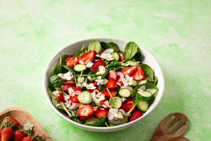 Клубничный салат со шпинатом