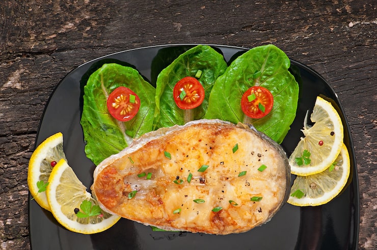 Гриль-рыба с овощами