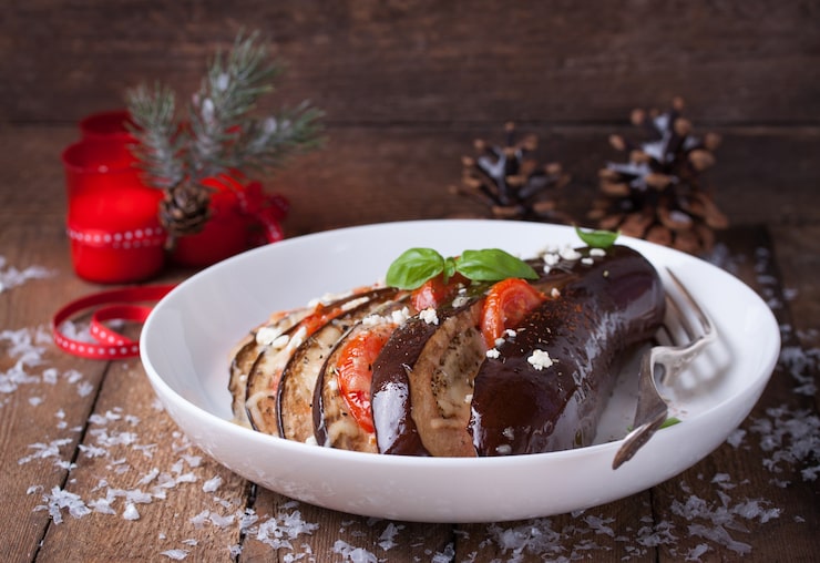 Рулет из телятины с овощным гарниром