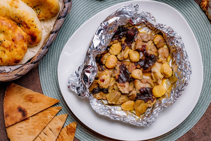 Запеченный на гриле картофель в фольге с беконом и чесноком