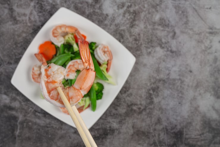 Креветки с овощами