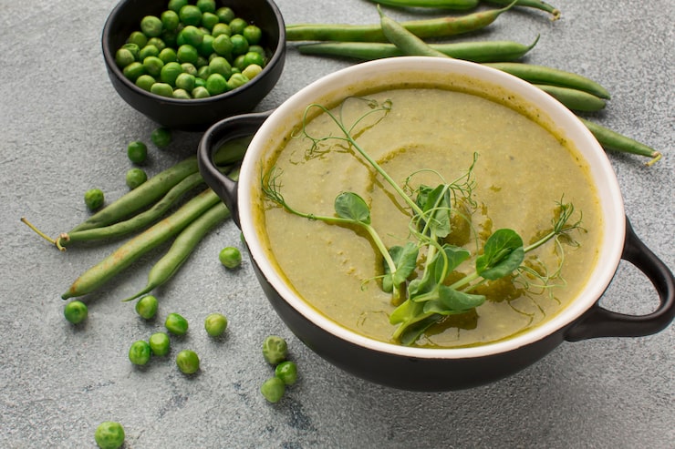 Томатный суп с говядиной и горошком