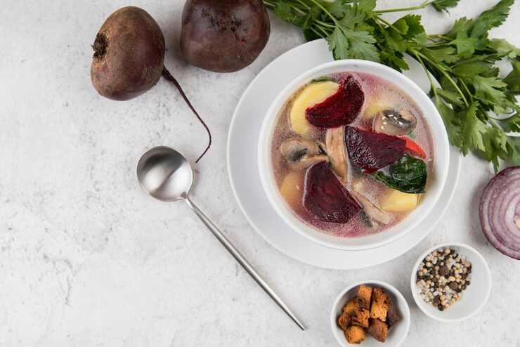 Чтобы борщ получился насыщенного, бордового цвета, используйте запеченную свеклу. Этот овощ, запеченный в духовке, сохраняет сок внутри, который затем обогащает бульон. Запекайте свеклу заранее. Описание приготовления: Ароматный, насыщенный борщ подают со сметаной, майонезом любой жирности и мелко нарезанной свежей зеленью. К нему хорошо подойдут пампушки или другая несладкая выпечка. Следует учитывать, что борщ […]