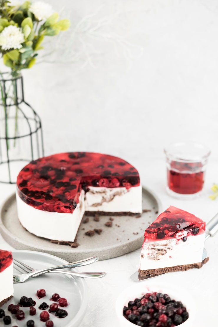 Остывший чизкейк готов к подаче.