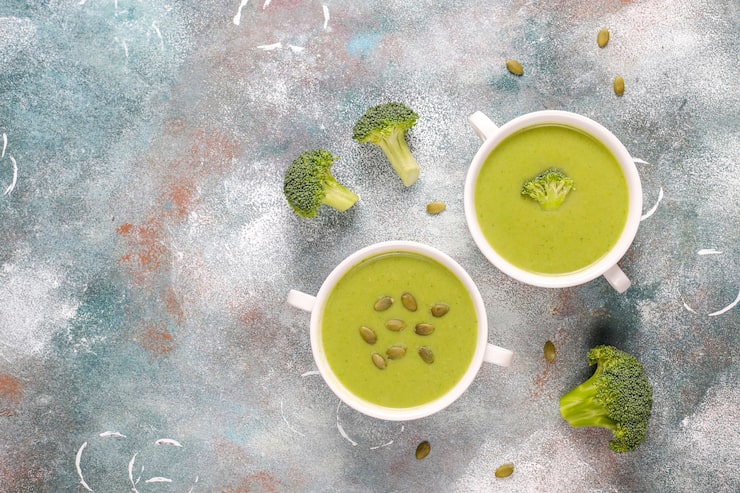 Брокколи поместите в кипящую воду, добавьте манку и быстро перемешайте, чтобы избежать образования комков. Затем доведите суп до кипения и варите его в течение 10 минут.