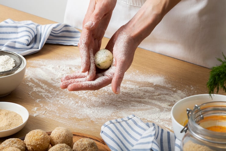 Сначала я добавляю половину необходимого количества, а затем постепенно ввожу остальную муку. Количество муки может незначительно варьироваться от указанного в рецепте. В результате должно получиться мягкое и воздушное тесто, не слишком плотное.