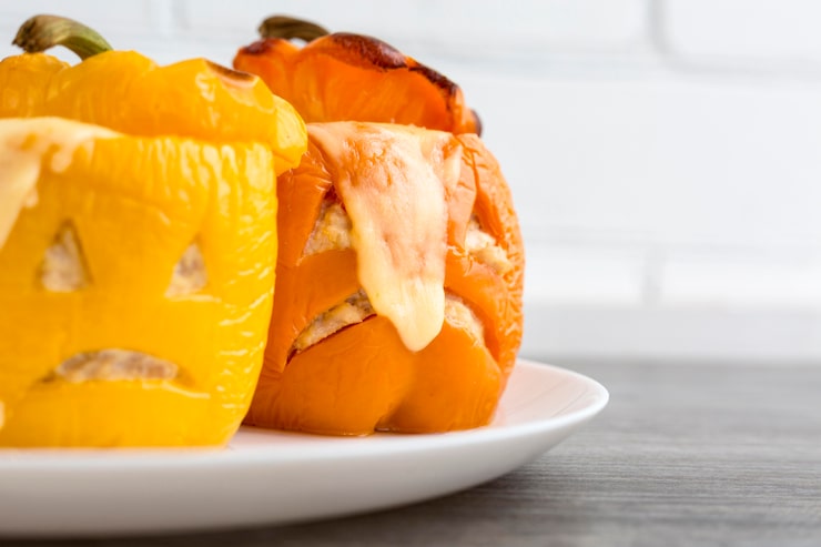 Заполните подготовленную тыкву приготовленным фаршем, накройте срезанной частью, поставьте тыкву в глубокую посуду и запекайте при температуре 170 градусов до мягкости