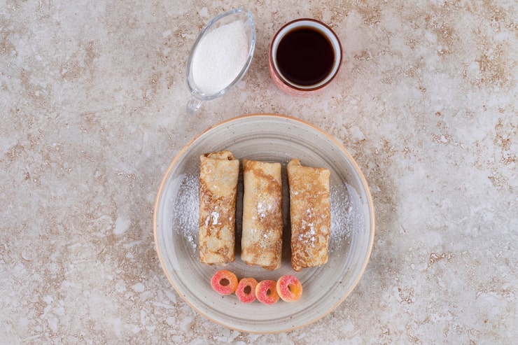 Блины можно испечь на молочной или водной основе, а начинку выбрать на свой вкус: морепродукты, фарш, паштет, дип или яичный суфле и другие варианты. Подавать это блюдо можно с разными соусами, сметаной или густым, классическим йогуртом без добавок. Они хороши и в горячем, и в холодном виде.