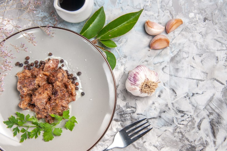 Разогрейте сковороду на среднем огне. Добавьте измельченный чеснок и морковь натертую на терке для корейской моркови. Жарьте пару минут до золотистого цвета.