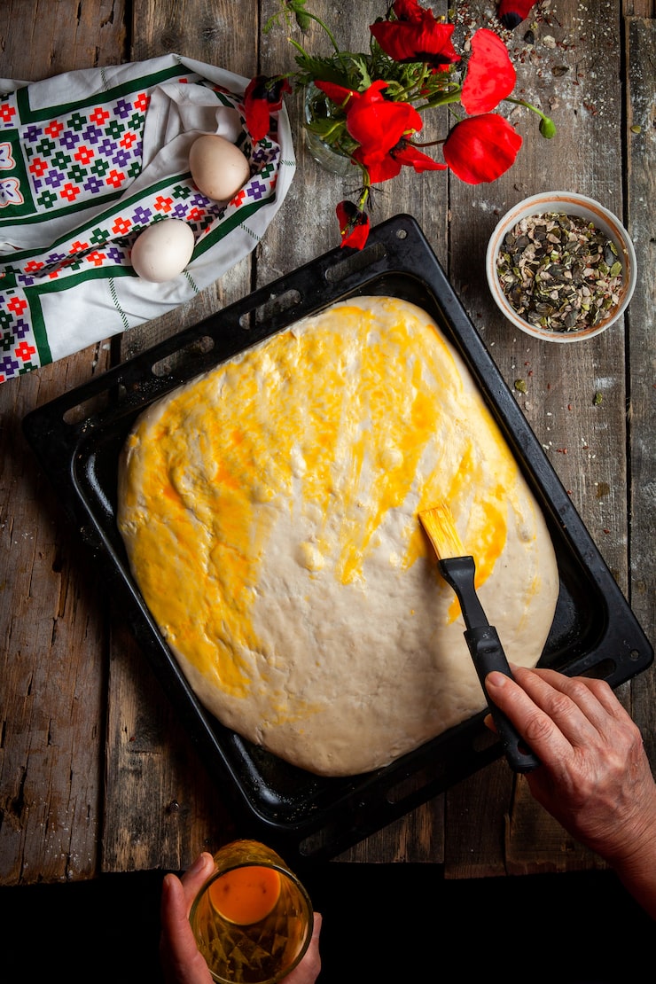 Приготовьте мягкое и эластичное тесто. Если оно липнет к рукам, добавьте немного муки. Сформируйте из теста шар, поместите его в полиэтиленовый пакет и оставьте на 20-30 минут для расстойки.