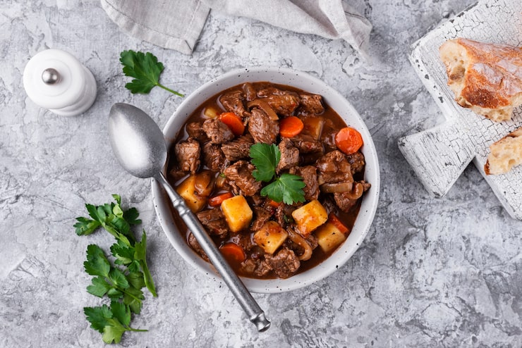 После закипания супа, убавьте огонь, накройте его крышкой и дайте ему потомиться в течение полутора-двух часов. Мясо за это время должно приобрести мягкость.