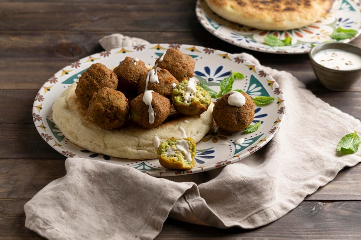 Разлейте суп по тарелкам, добавьте сверху фалафель и измельченную зелень. Наслаждайтесь едой!
