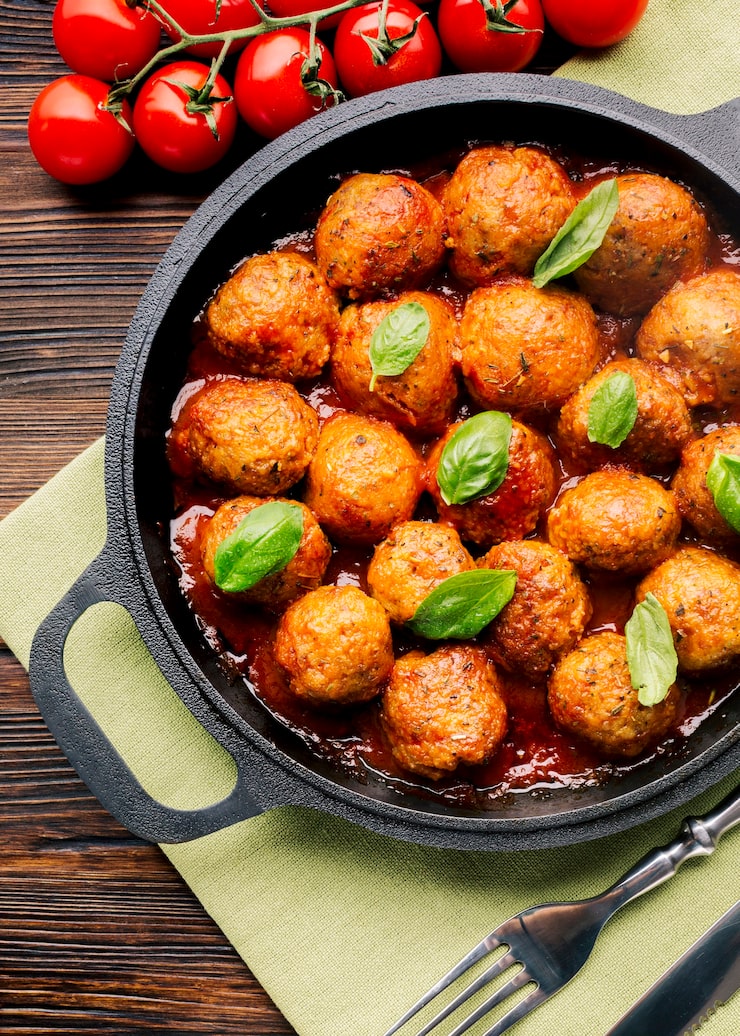Пока овощи готовятся, влажными руками сформируйте из фарша шарики, размером с грецкий орех. Это будут фрикадельки.
