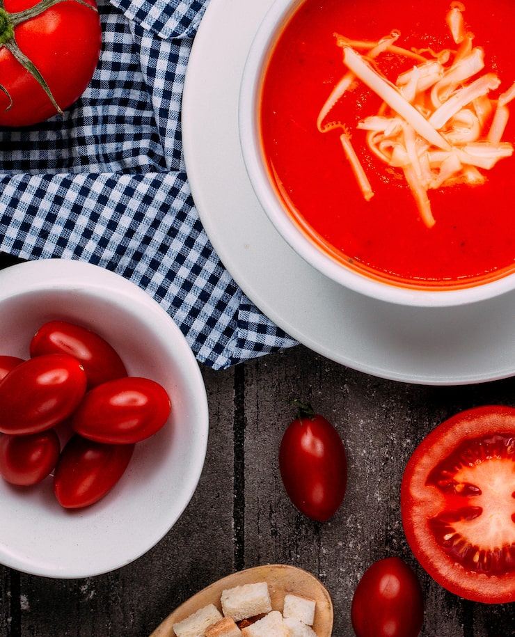 Для создания картофельного супа с помидорами используют куриный бульон и сочетание свежих летних овощей. В итоге блюдо сочетает в себе ароматы и вкус разнообразных вкусных ингредиентов: помидоров, сладкого перца, лука и, конечно, картофеля. Яркий акцент блюду придает сочная зелень и мелко нарезанный лук. Суп напоминает классический овощной суп, однако он получается более насыщенным и полезным. Рекомендуется попробовать этот вариант.