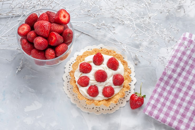 Яркий клубничный пирог лучше всего готовить в период сбора урожая этой душистой ягоды и подавать к столу в сочетании с горячими напитками, теплым молоком или кефиром. Начинка этого пирога обладает очень нежным вкусом, а тесто получается хрустящим и рассыпчатым.