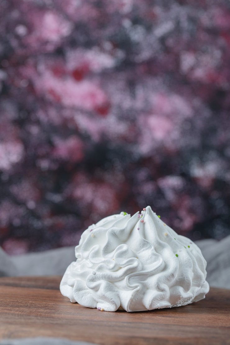 Вливайте сироп очень тонкой струйкой в белковый крем, продолжая взбивание и стараясь не допускать попадания на лопасти венчика. Взбивайте в течение 5-7 минут: готовый крем должен образовывать четкий рельефный след и «намотаться» на венчик. Переложите крем в кондитерский мешок. Гелевыми пищевыми красителями можно подкрасить часть крема.