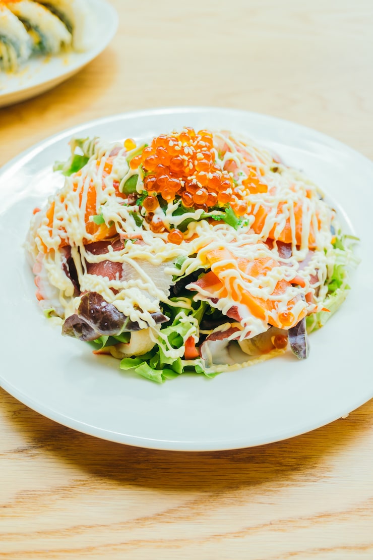 Крабовый салат с икрой мойвы радует своим насыщенным вкусом и ароматом. Икра добавляет блюду изысканную пикантность и прекрасно сочетается с морепродуктами, включая крабовые палочки.