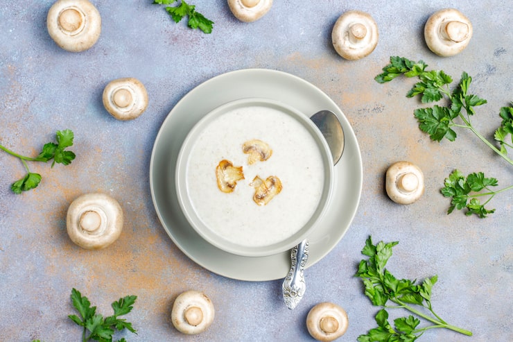 Предлагаем изготовить аппетитный и несложный крем-суп с грибами. В этом рецепте не требуется использование сливок, а желаемую густоту достигают благодаря пшеничной муке, добавленной в воду.