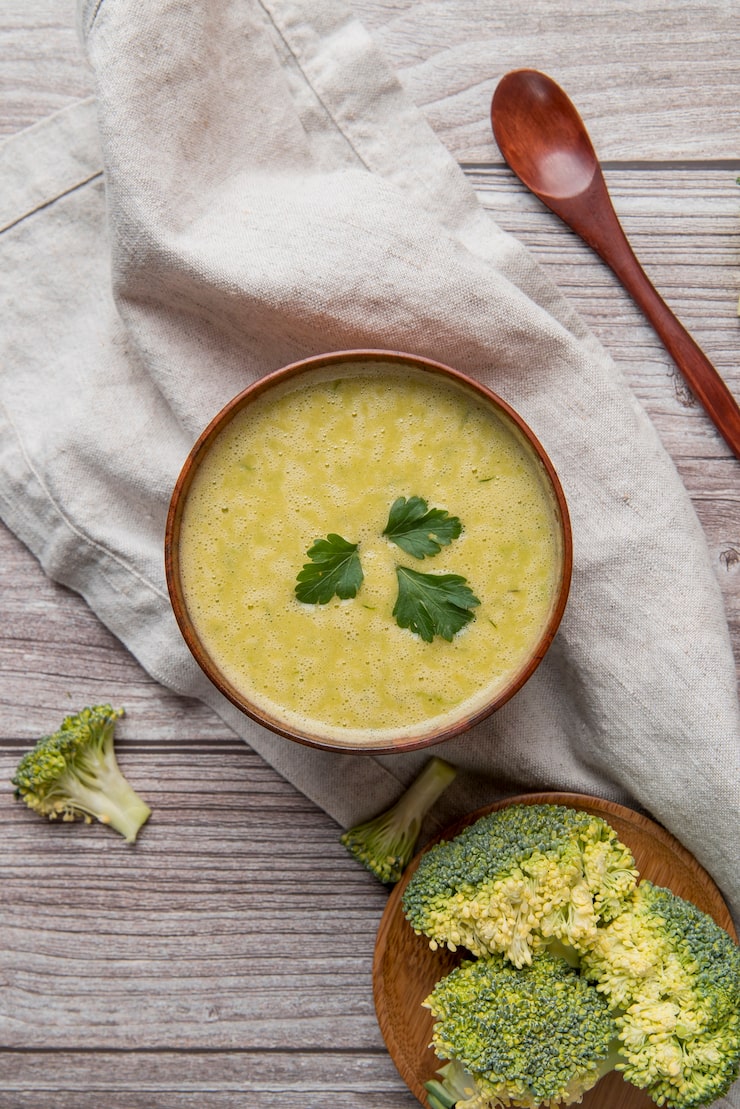 Суп измельчают до состояния пюре с помощью погружного блендера. Консистенцию супа можно корректировать в зависимости от личных предпочтений. Обжаренные гребешки добавляют в суп уже непосредственно в тарелке.