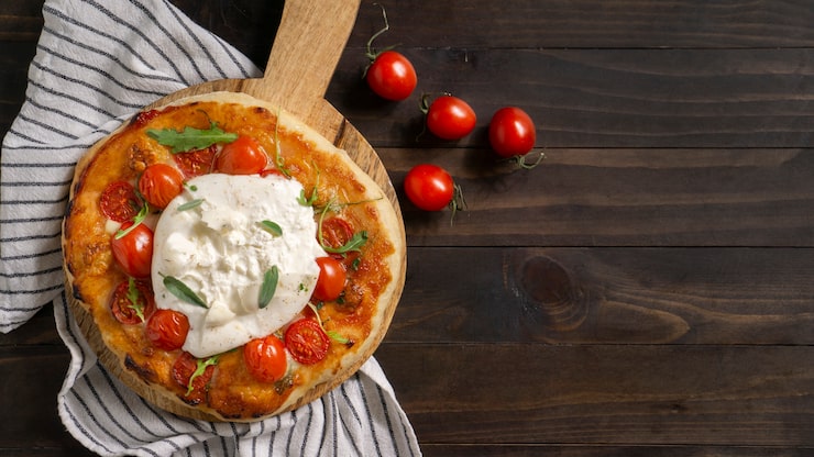 Для приготовления потребуется дрожжевое тесто, замешанное на воде. Соус из томатов с базиликом также необходимо подготовить заранее. Затем можно выпекать ароматные лепешки в духовке.