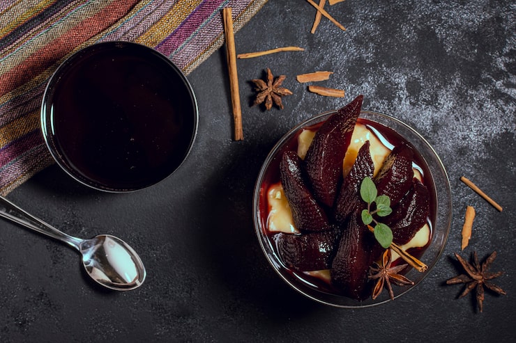 Всыпьте пшеничную муку в емкость, тщательно перемешайте и добавьте красное вино. Доведите до состояния, близкого к кипению.