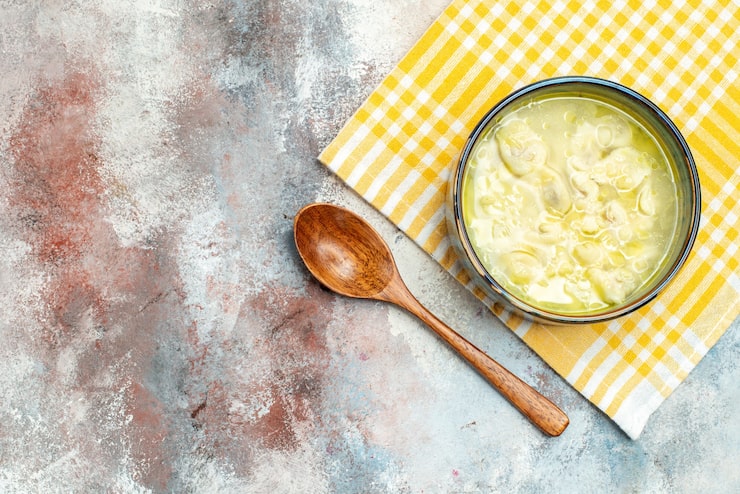 Влейте бульон, положите нарезанное мясо и сыр. Добавьте тимьян. Установите режим «Выпечка» на 20 минут. В уже готовый суп можно добавить натертый твердый сыр.