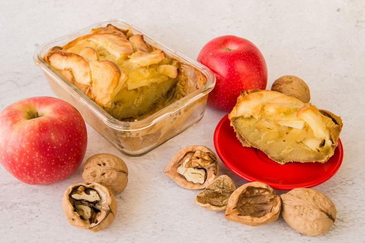 Выложите оставшееся тесто на яблоки и равномерно распределите его. Поместите форму в предварительно нагретую до 180 градусов духовку на 30-35 минут. При этом учитывайте характеристики вашей духовки.