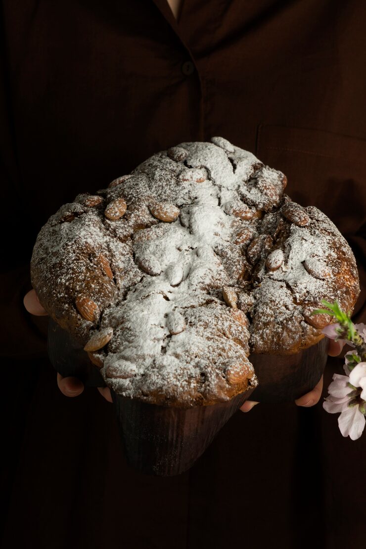 Для создания изысканного кекса с миндальным вкусом предлагаю использовать марципан и муку миндаля. Шоколадные капли и изюм добавят ему неповторимый вкус. Приготовить его можно заранее, рекомендую учесть это!