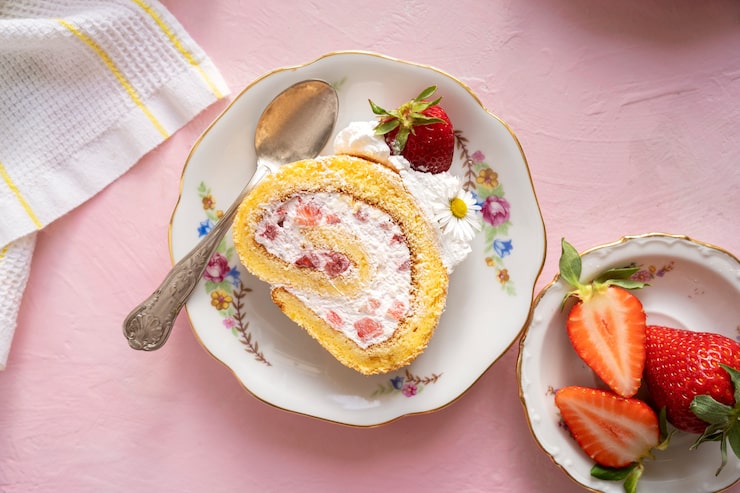 Для приготовления коржа потребуется белок из 5-6 яиц. Оптимально, если они будут предварительно охлаждены. Чтобы добиться более плотной консистенции сливок и обеспечить лучшую стабильность формы, в них можно добавить загуститель. Этот рулет идеально сочетается с кислыми ягодами и фруктами. Если подержать его несколько часов в холодильнике, он станет еще более нежным.
