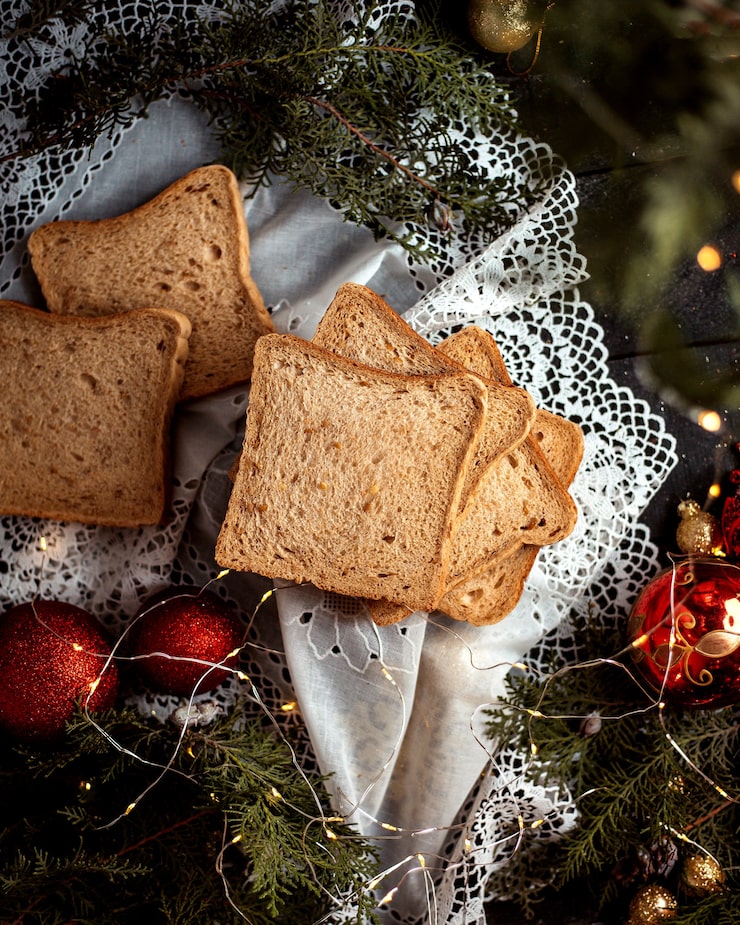 Соберите все нужные продукты для выпечки новогоднего хлеба.