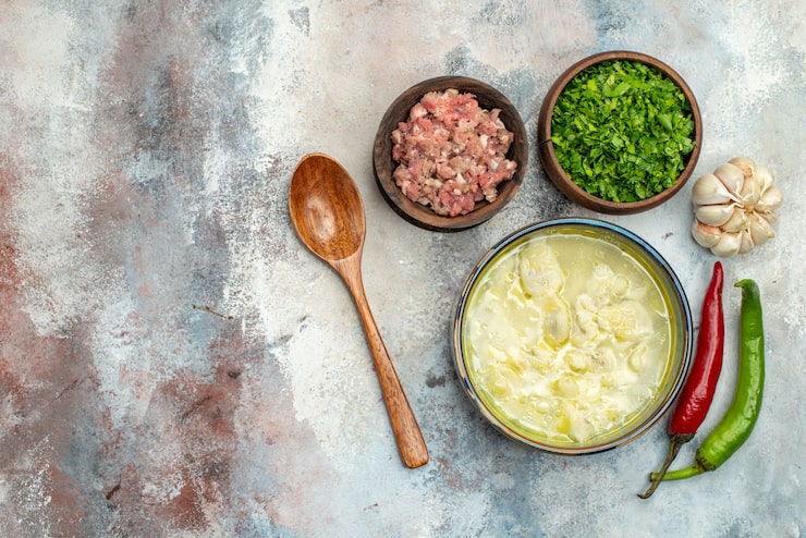 По вкусу добавьте немного соли, при желании можно добавить перец. Залейте напитком и перемешайте.