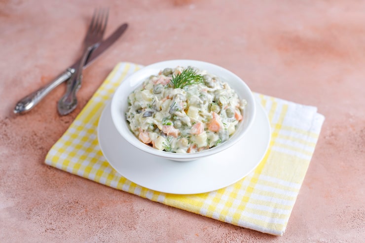 Тем, кто ценит крабовое мясо и крабовые палочки, этот салат, вероятно, придется по вкусу. Классический «Оливье» обретает изысканные морские акценты. Это блюдо станет отличным дополнением к любому столу, как в повседневной жизни, так и во время торжеств.
