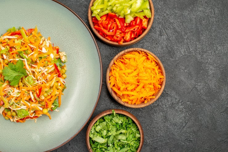 В качестве ингредиентов потребуются тертая морковь, болгарский перец, нарезанный тонкими полосками, лук, а также соль и молотый перец, добавленные по вкусу.