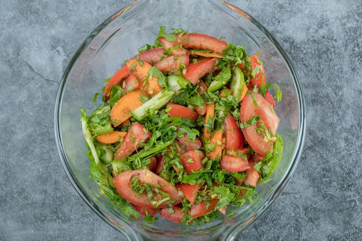 Этот изысканный овощной салат с сухариками обладает прекрасным вкусом и сбалансированностью, благодаря чему он идеален в своем нынешнем виде. Отличный вариант для ужина на двоих! Порадуйте близких.