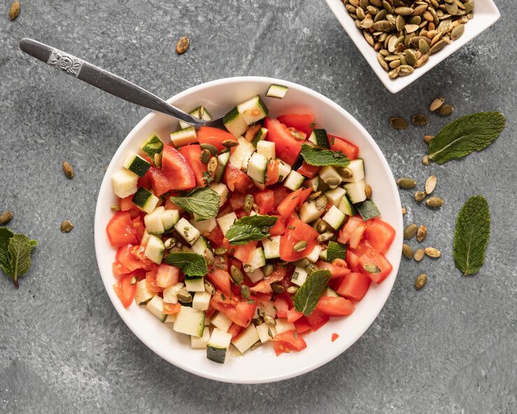 Для создания «Овощного салата с сушеной спаржей» потребуется выполнить следующие шаги»