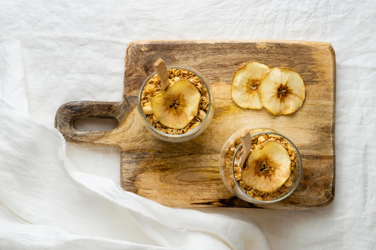 Вмешайте кленовый сироп и добавьте молотую корицу.