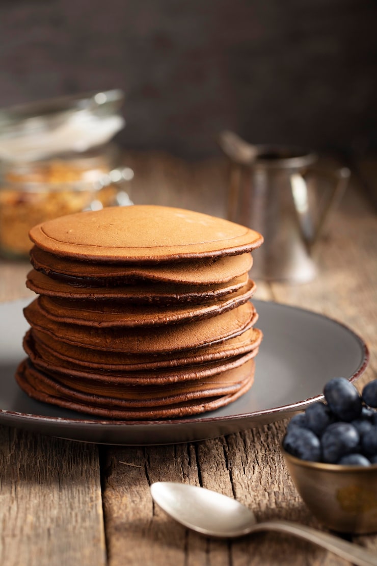 Разложите панкейки на тарелке и подавайте к столу теплыми, не забудьте заварить ароматный чай!