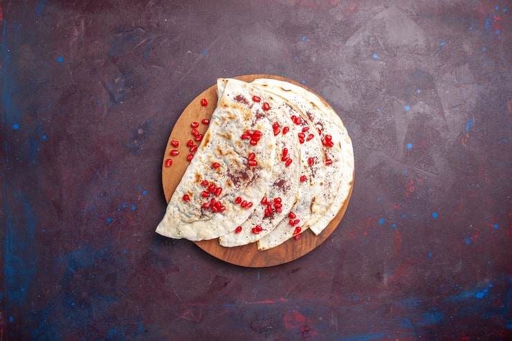 Вырежьте из двух листов лаваша четыре круга. Для этого удобно использовать ножницы и круглый шаблон, например, крышку или тарелку нужного размера.