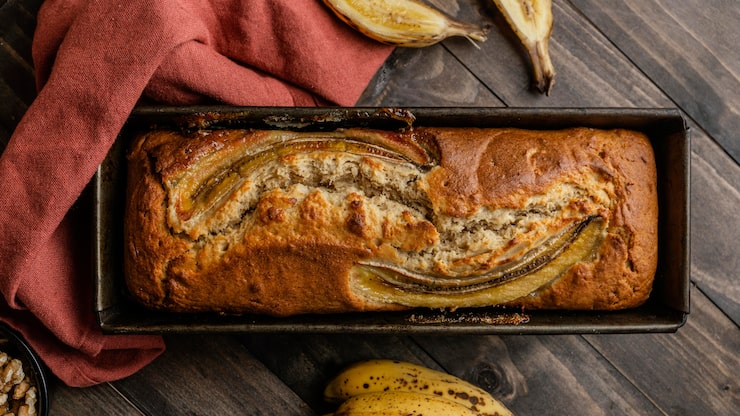 Всыпьте измельченные грецкие орехи и добавьте банан, нарезанный небольшими кусочками. Осторожно перемешайте тесто.