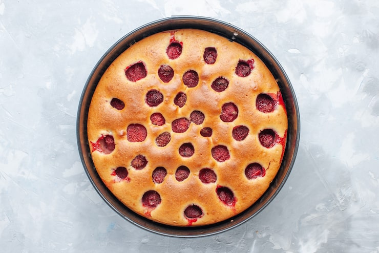 Поместите форму с тестом в разогретую духовку и выпекайте малиновый пирог в течение 35-40 минут, пока он не будет готов. Дайте пирогу полностью остыть и подавайте к столу.