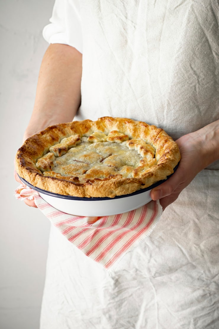 Накройте пирог и поместите его в теплое место на 10-15 минут. Смажьте поверхность яйцом.