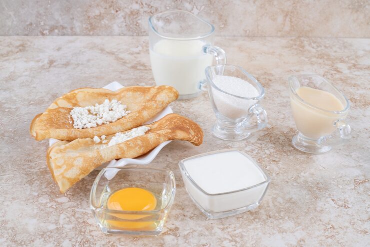 Соберите все требуемые продукты для приготовления пирожков на кефире и сметане. Кефир рекомендуется достать из холодильника заранее, чтобы он нагрелся до комнатной температуры. Приготовьте начинку до начала выпечки.